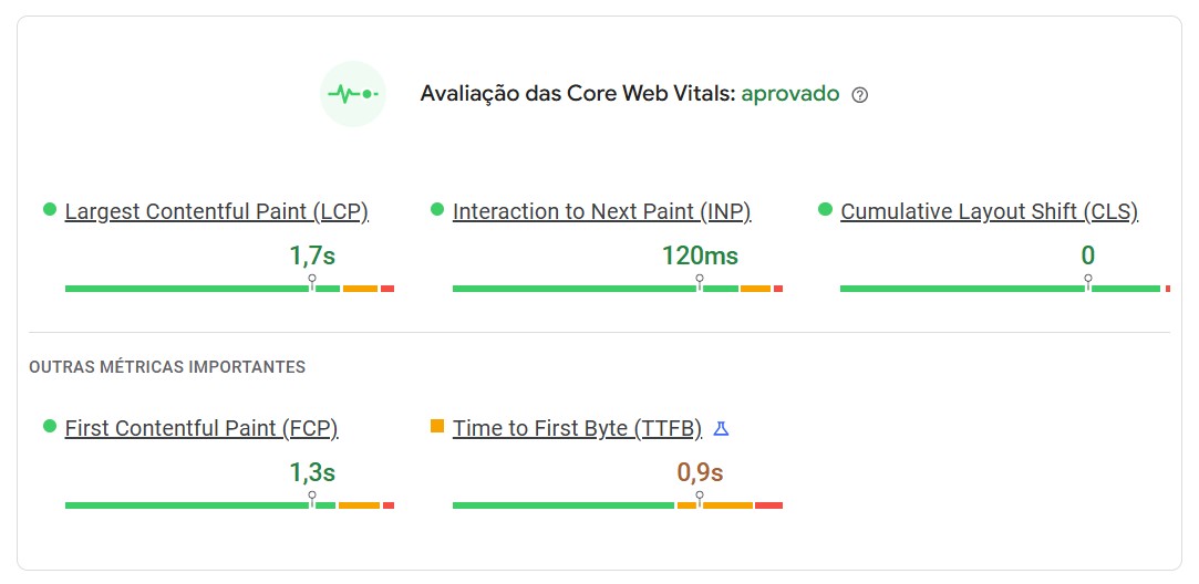 • Alta performance e carregamento rápido Site aprovado integralmente nos critérios do Google PageSpeed, proporcionando melhor experiência ao usuário.